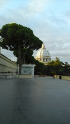We were told to not stay out too late since the buses were to leave for the Vatican at 7 the next morning. It was all I could do to stay up until 8 to eat a slice of pizza and wearily flop onto the bed. Lights were out at 8:15 – along with a big dose of vitamin C to counter the attack of yuck that has started to go around the group. It was wonderful – no roosters, screens on the windows to keep out the flies and mosqitoes, and a bed that was a bed and not a cot! 10 hours later I was a new woman! Yes to sleep and Yes to the power of positive thinking.