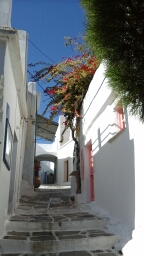 Then we took a day trip by bus to the mountain town of Lefkes.  This looks like a lovely flat Byzantine Road – what you don’t see is the precipitous climb down to it (couldn’t take a picture I was more concerned about my footing) as well as the up and down motion once the road was manifest.  But hike it we did for an hour in each direction – with a lovely view of the Aegean and the island of Naxos in the distance.