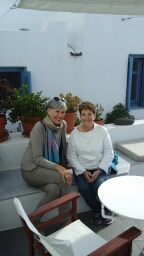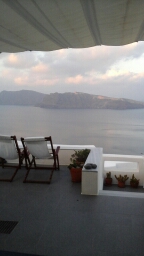 Yes, we changed our reservations for the hotel and got new plane flights when the strike was finally over on Friday morning.  When the ferry arrived from Athens we were amazed at the number of trucks, people, and hubbub – the normal 15 minute turn around time was almost 45 minutes as supplies were unloaded and reloaded.  The day was gorgeous and the 4 hour ride was delightful – it didn’t hurt that the little cafe on board had the best chocolate dessert I have had in Greece.  This is the view from our balcony at the hotel.